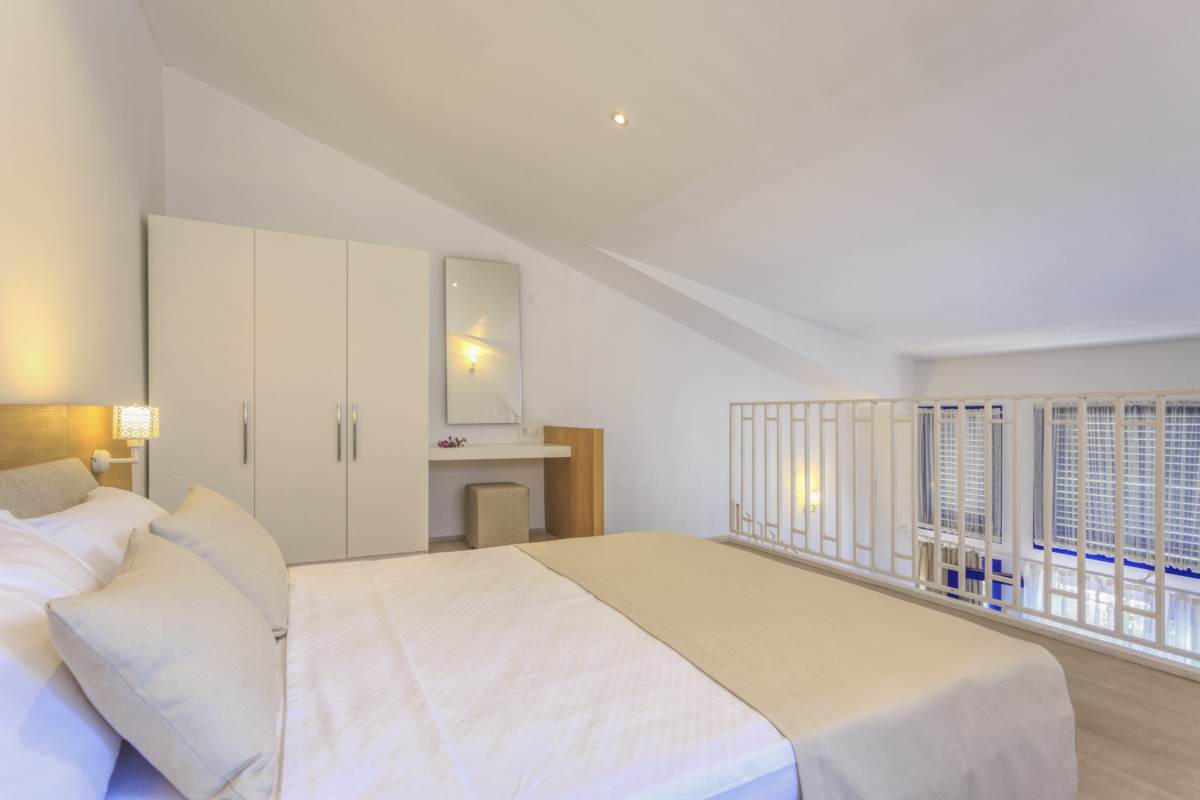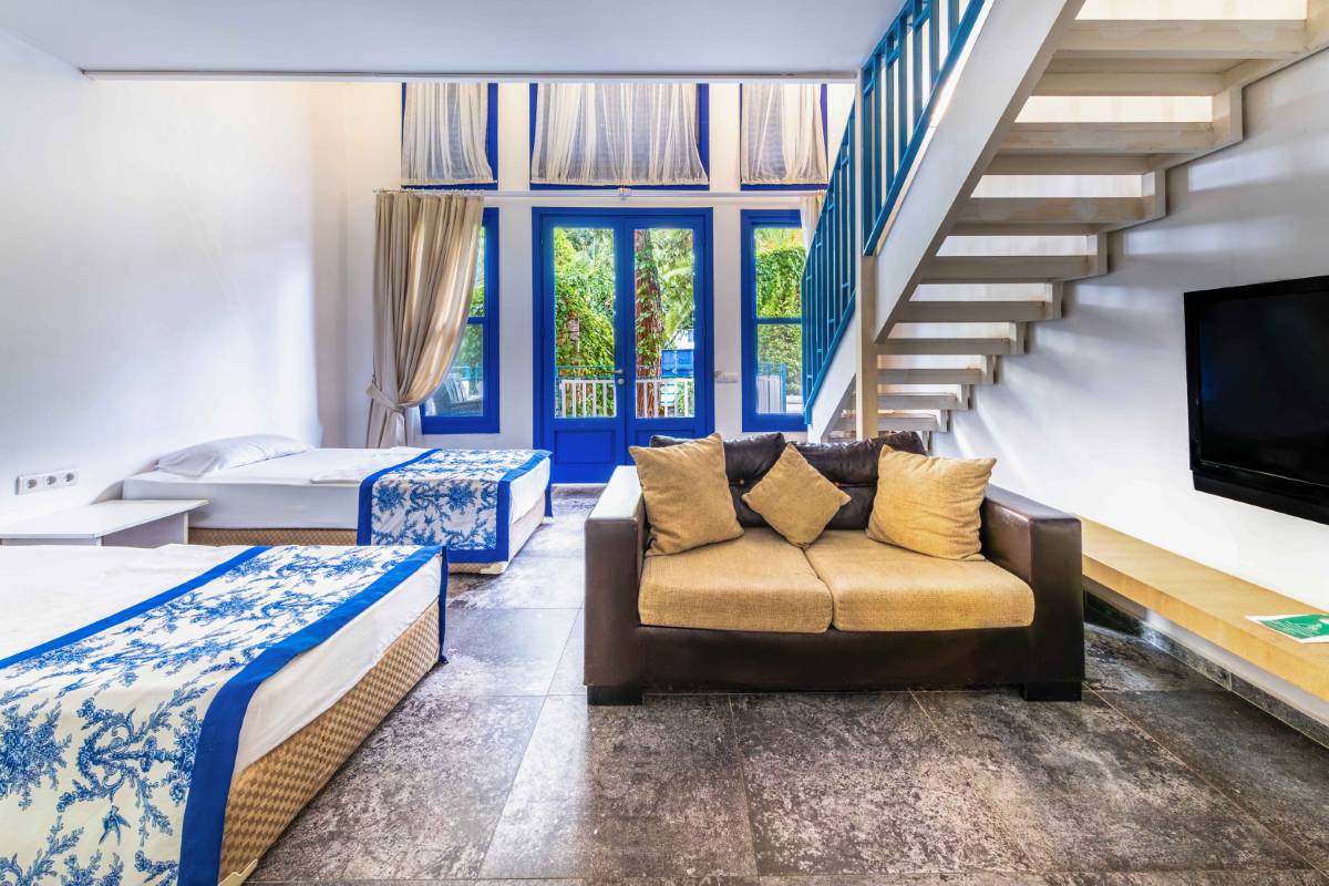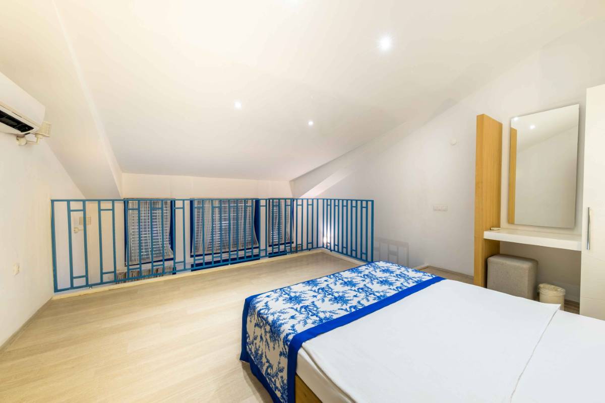 Dublex Oda: 45 m² genişliğindedir. 8 Adettir. Alt katta 2 tek kişilik yatak ve üst katta 1 çift kişilik yatak bulunmaktadır.